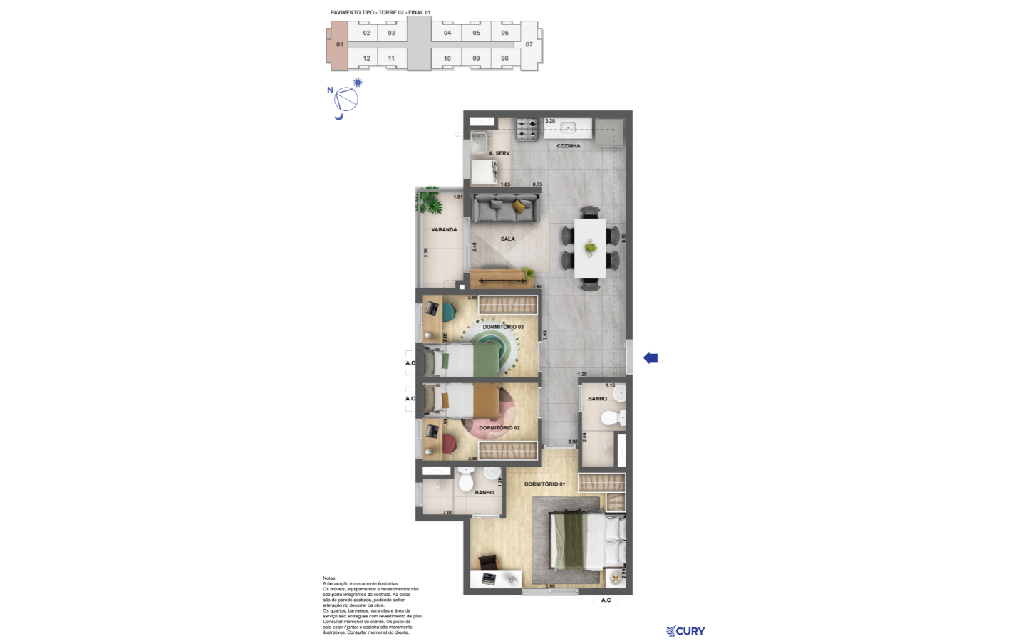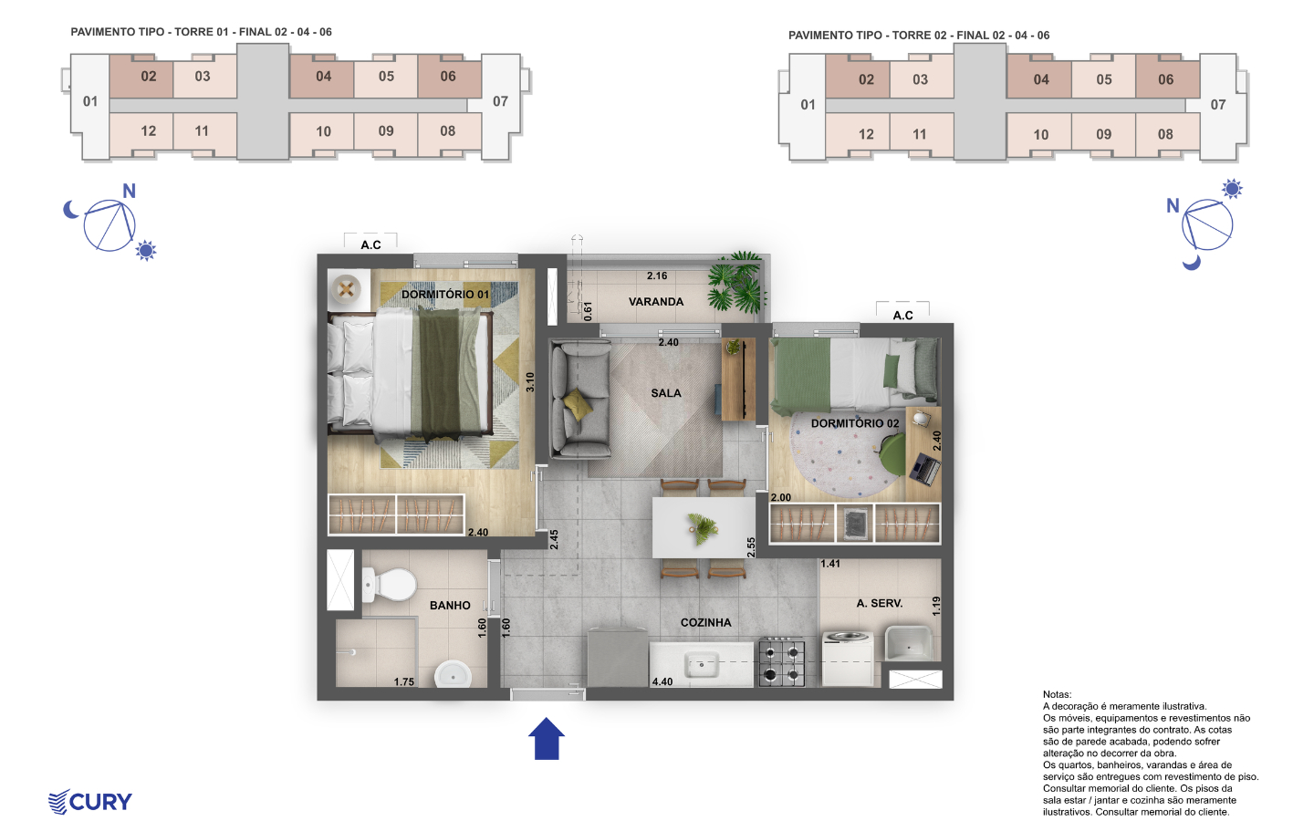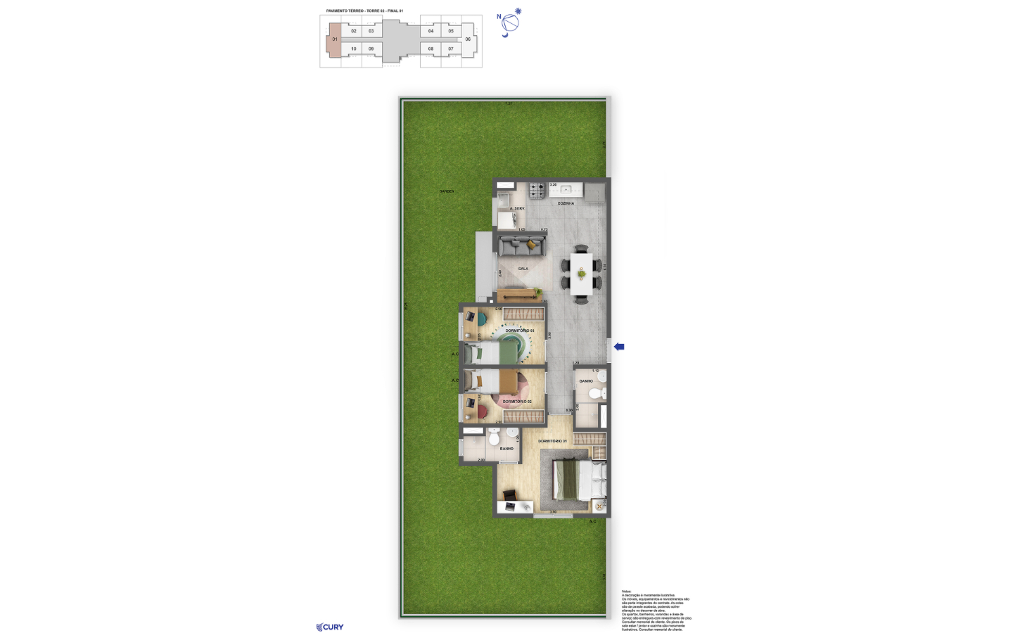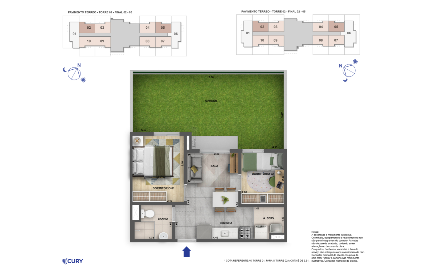 Apartamentos à venda de 2 e 3 quartos com opção de suíte e garden. Conheça o Nova Norte - Raízes com a Cury Construtora!